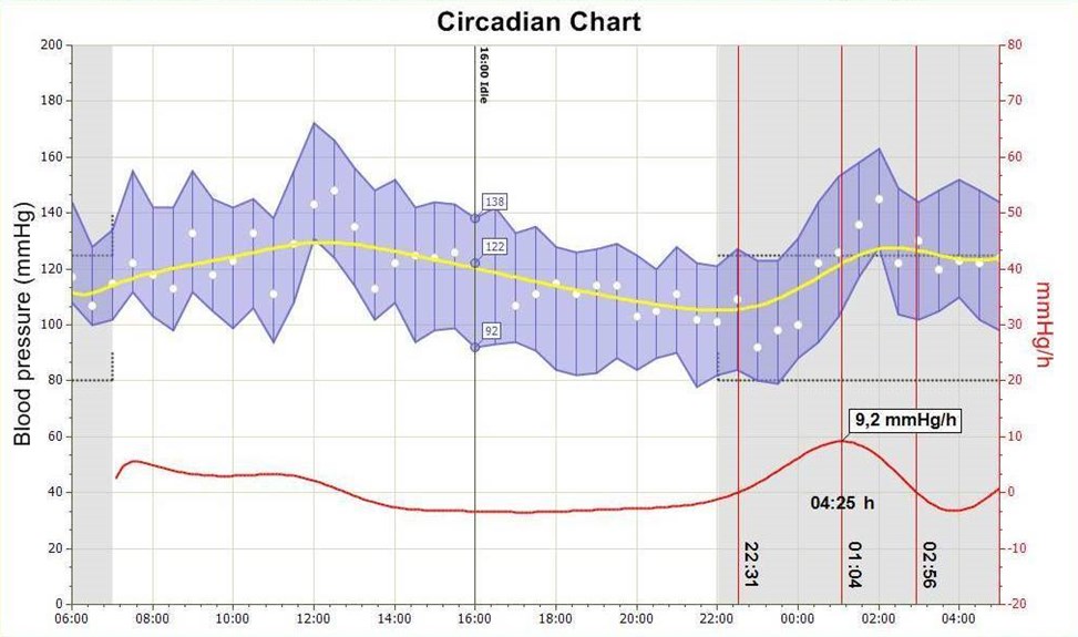 O EUROHOLTER ABPM armazena até 200 medições, registadas de acordo com um dos protocolos predefinidos ou com um protocolo personalizado. Os dados registados podem também incluir a onda esfígmica de cada medição individual.
